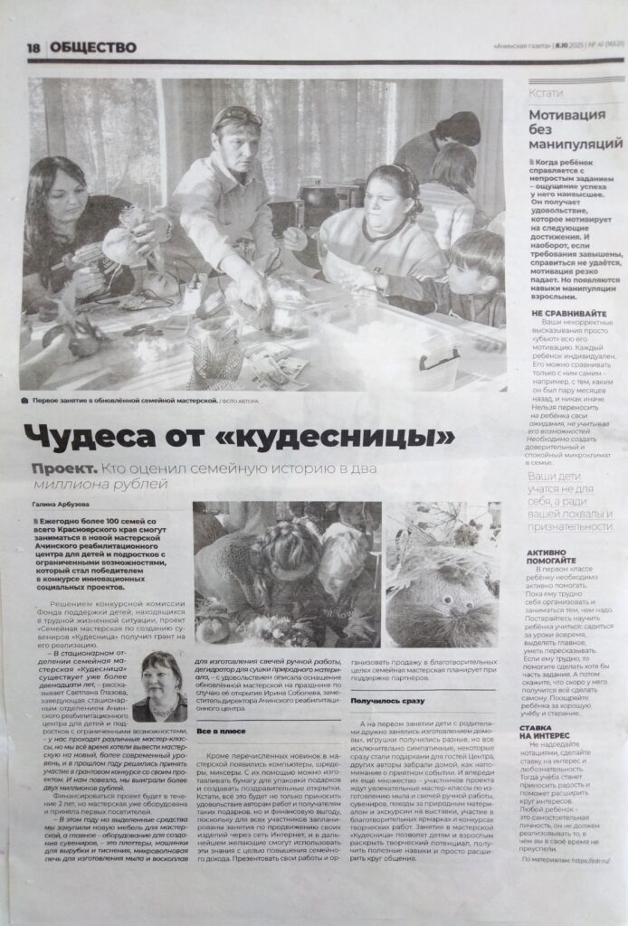 Статья Ачинская газета № 41 8 октября 2025 года стр.18
