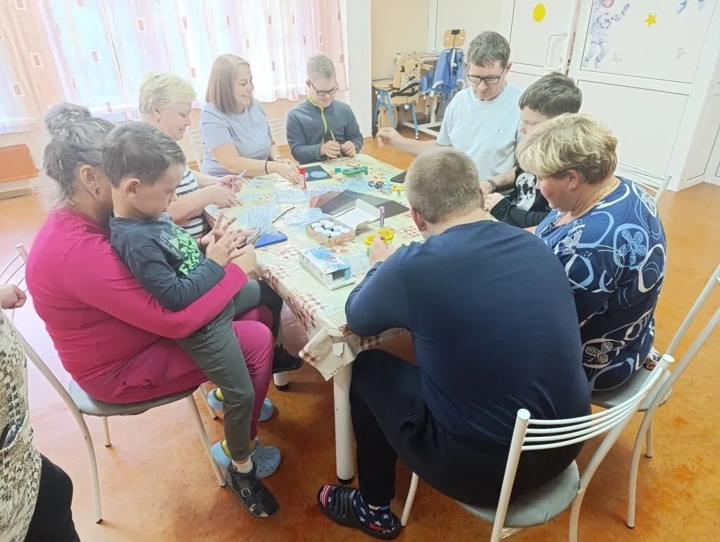 Пока полным ходом идет оформление нового кабинета, сотрудники семейной мастерской «Кудесница» не сидят без дела. Заезд в стационарное отделение выдался очень активным, творческим и душевным. Работали с удовольствием: в семейной мастерской для ребят и родителей прошли увлекательные мастер-классы, участники с радостью погрузились в мир искусства, где каждый смог почувствовать себя настоящим мастером.
