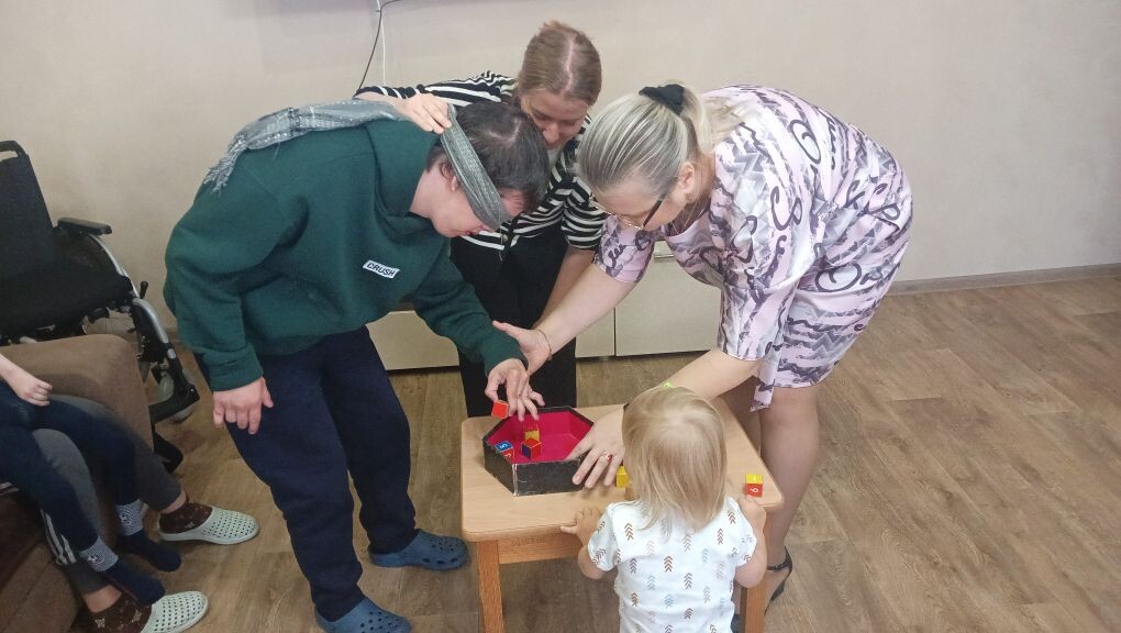 Ребята попробовали почувствовать себя невидящими людьми и с завязанными глазами построили башню из кубиков и поиграли в игру «Достань предмет рукой, не глядя». И оказалось, что намного труднее совершать простые действия, когда не видишь. Ребята поняли, как трудно приходится незрячим и слабовидящим людям, и пообещали при встрече всегда им помогать.