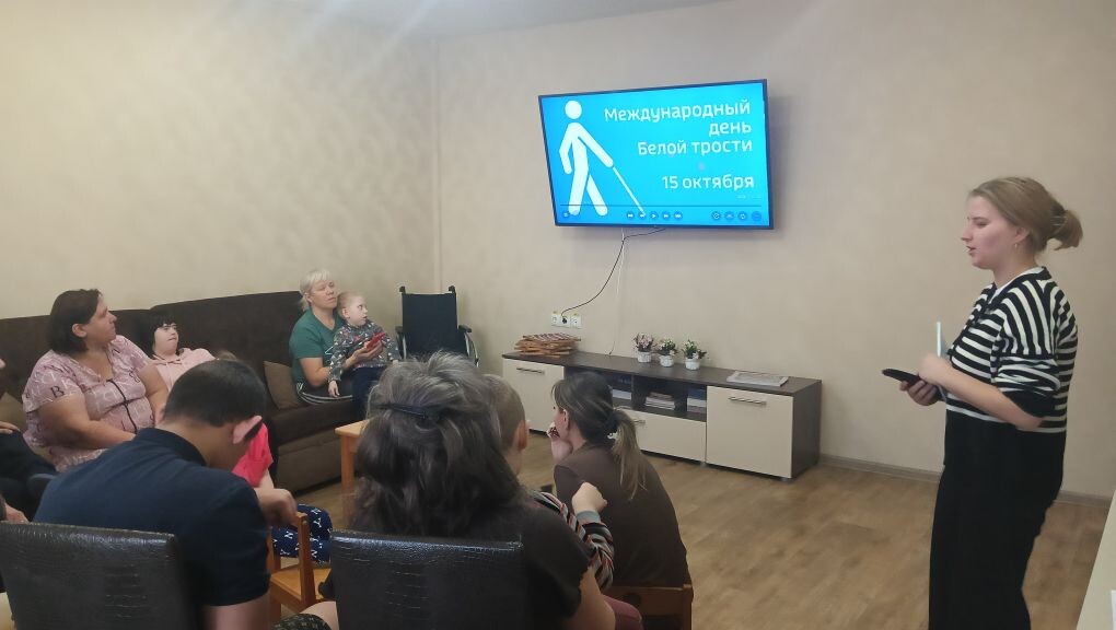 15 октября ежегодно во всём мире отмечают Международный день белой трости. Этот день призван привлечь внимание общества к проблемам слепых и слабовидящих, напомнить об их правах и возможностях. В рамках этого дня у нас в центре прошло мероприятие под одноимённым названием. Ребята и родители посмотрели видеоролик о том, как трудно слепому человеку буквально «жить на ощупь», полагаться на слух, обоняние, тактильные ощущения. Узнали историю появления белой трости и почему она именно белая. Ребята вспомнили, что видели на дверях желтый круг, а в центр бегут утром по тактильным дорожкам, которые представляют собой специальные плитки с рельефными выступами, которые помогают незрячему человеку ориентироваться в пространстве и понимать окружающую обстановку. А желтый круг показывает слабовидящим, что перед ними двери.