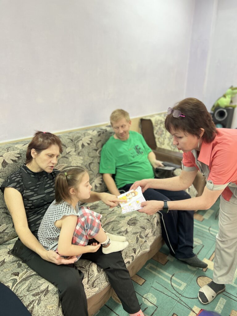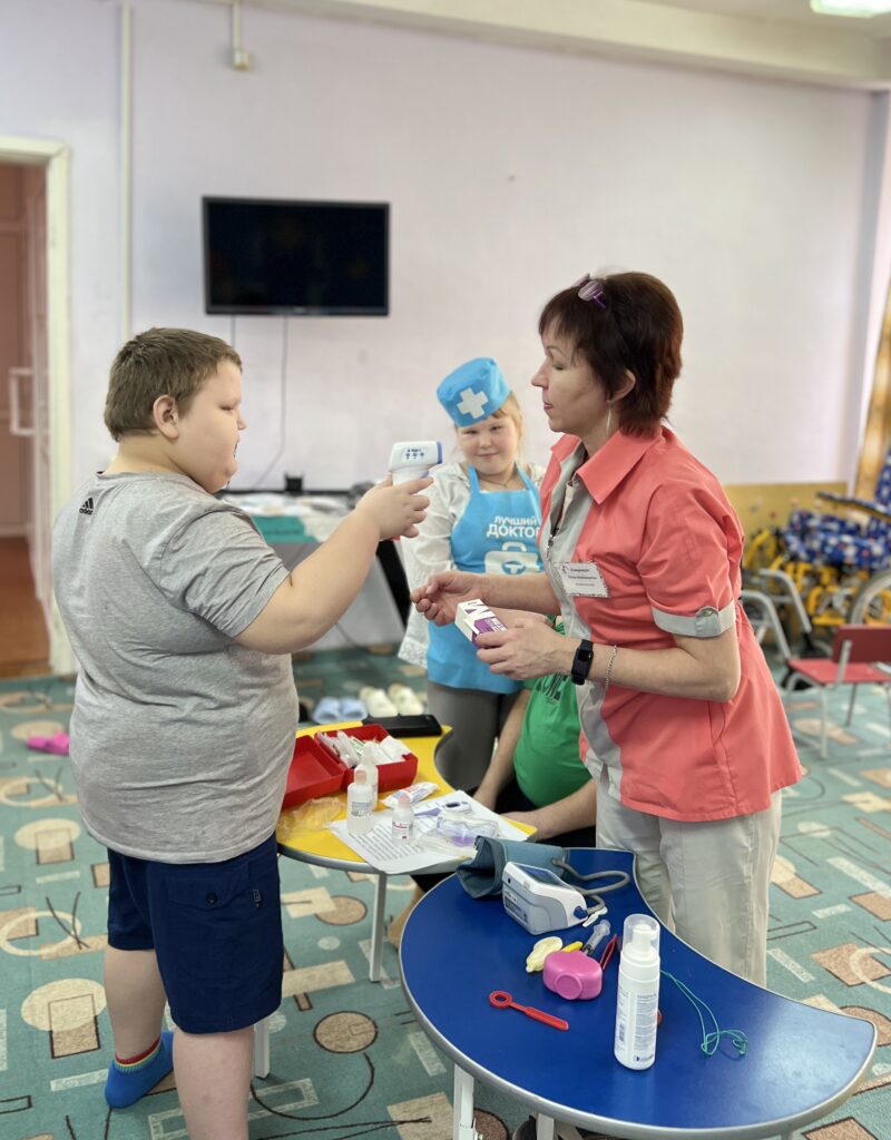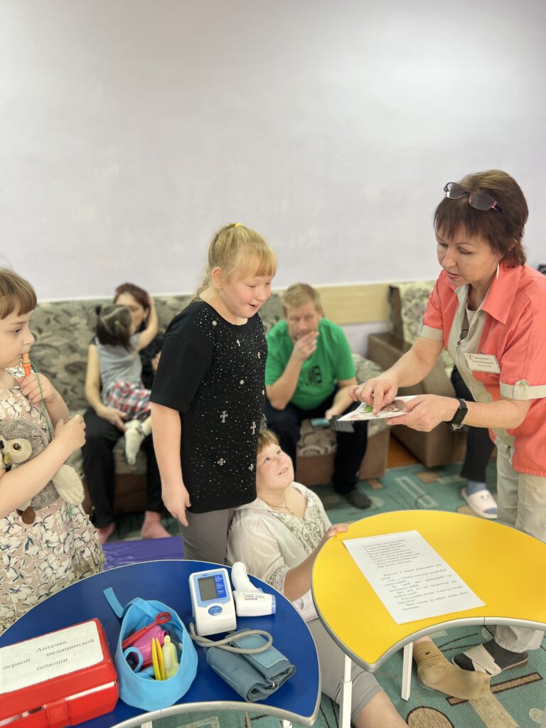В рамках службы «Рецепты здоровья» в нашем центре для детей и их родителей прошло познавательно-игровое мероприятие «Медицинская сестра», в ходе которого участники узнали о тонкостях работы в этой профессии. Дети познакомились с приёмами оказания первой медицинской помощи и усвоили, что первая помощь может спасти жизнь человека. Ребята охотно разгадывали загадки, собирали аптечку, измеряли температуру тела, обрабатывали раны и оказывали помощь пострадавшим. Медицинская сестра напомнила участникам о том, как правильно вызвать скорую помощь.