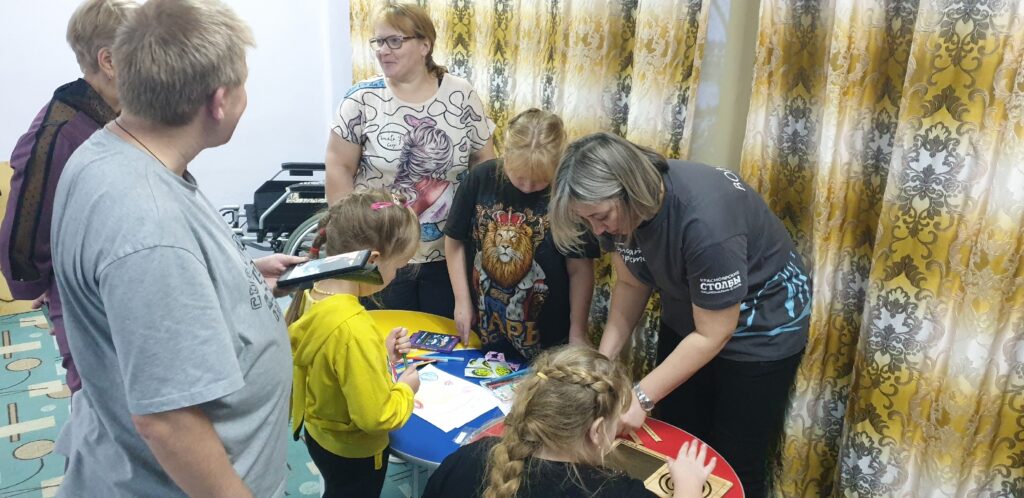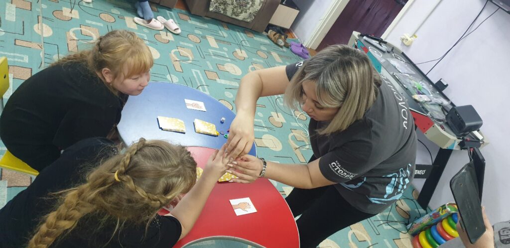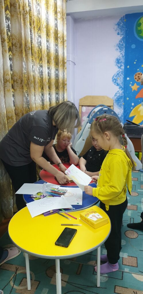 Путешествие на планету Меркурий состоялось в стационарном отделении благодаря волонтерам проекта “НейроКосмос”. Началось оно с просмотра познавательной сказки про солнечную систему, а потом был головокружительный полет среди звезд и высадка землян на неизведанной планете. Здесь изучили инопланетный язык жестов при помощи игры “Руки-трюки” и освоили чужую письменность, рисуя иероглифы на межполушароой доске.