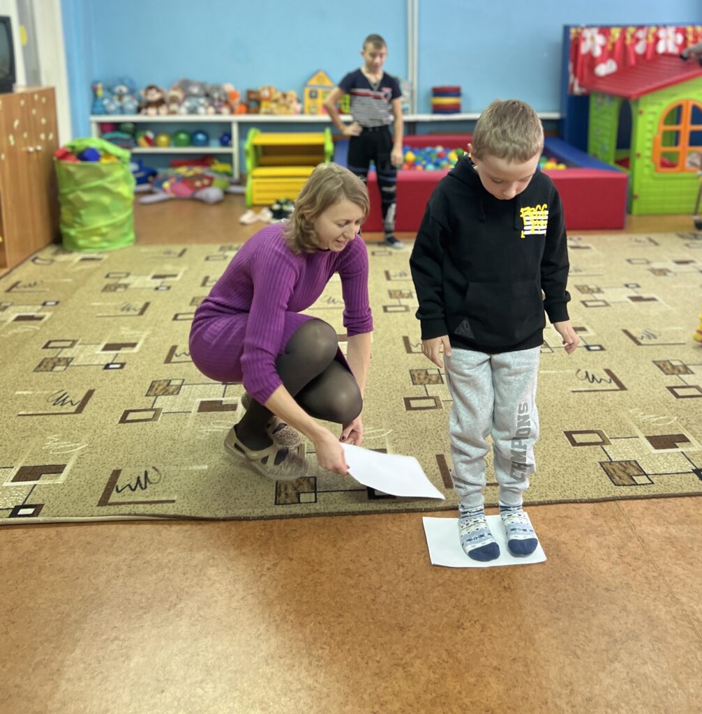 испытание «Болото»: ребятам нужно было перебраться через «топкую трясину», ступая только на «листья» (листы бумаги) — отличное упражнение для тренировки вестибулярного аппарата;
