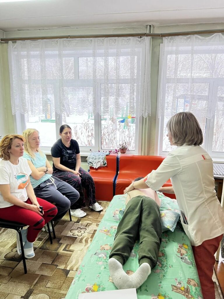 В нашем центре в рамках службы “Рецепты здоровья” прошёл практикум «Массаж грудной клетки» для родителей пациентов стационара. Медицинская сестра по массажу показала, как правильно выполнять перкуссионный массаж при кашле.