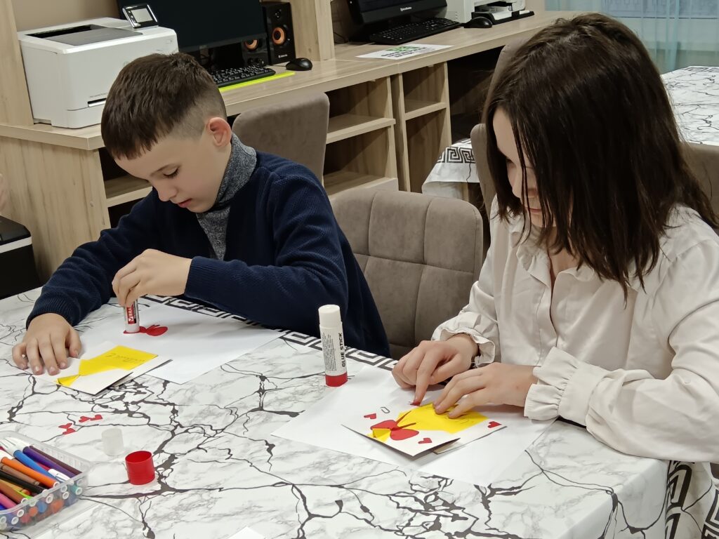 Лица участников светились гордостью, когда они завершали свои работы. Кто-то старательно выписывал на открытке: «Мама, ты самая лучшая!», кто-то украшал сердечко отпечатком своей ладошки, а кто-то молча, с сосредоточенным выражением, приклеивал последний цветок, словно вкладывая в него всю свою нежность.