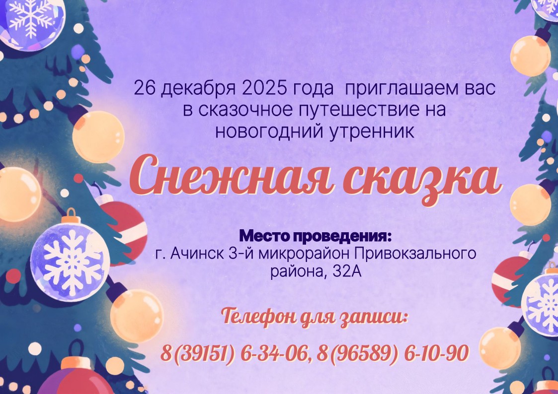 26 декабря 2025 года приглашаем вас в сказочное путешествие на новогодний утренник«Снежная сказка».