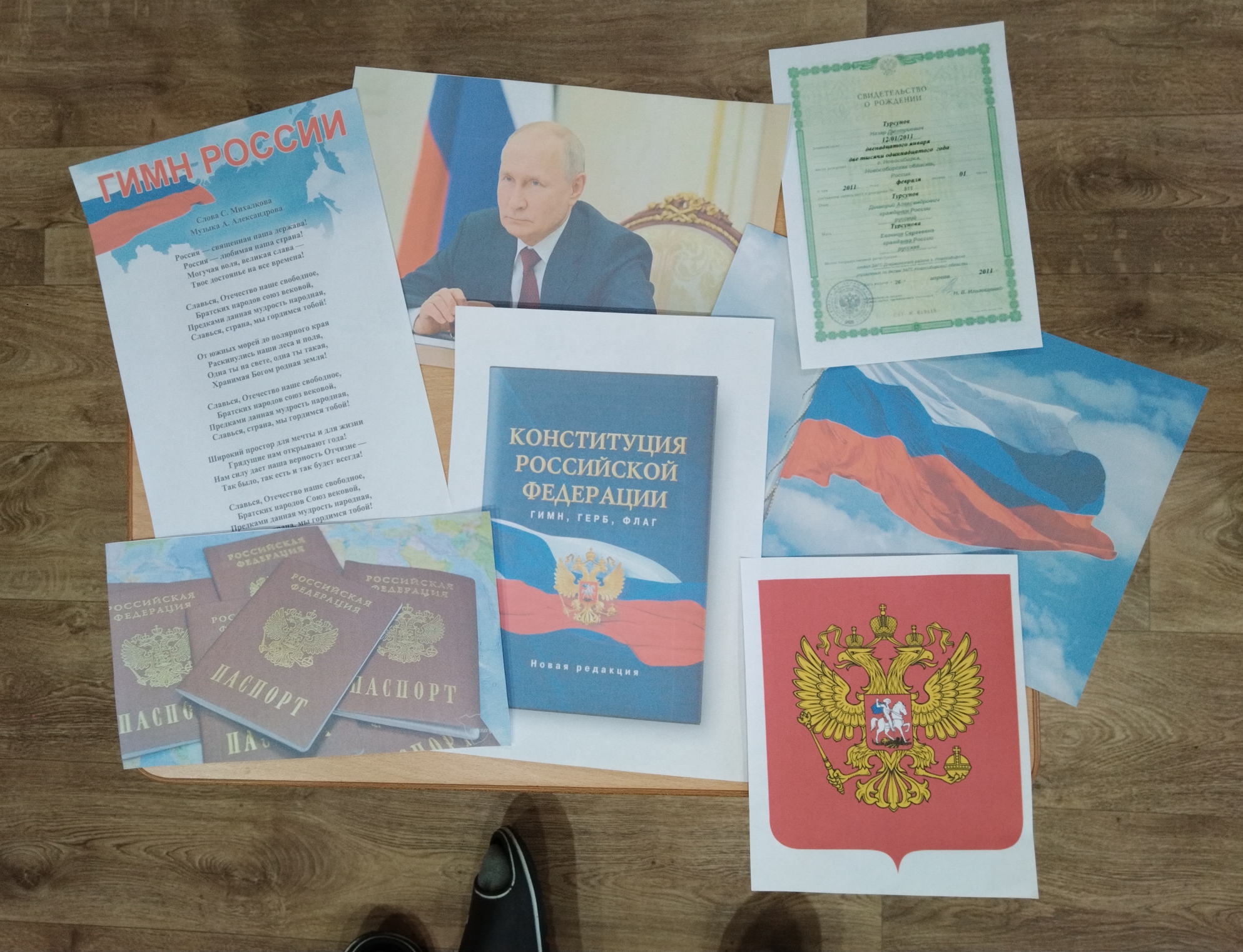 Во время игры ребята обсудили, что Конституция — это не просто книга, это основной закон, который определяет правила жизни каждого гражданина.Они с уважением прослушали гимн России, вспомнили значение цветов государственного флага и разобрались в символике герба: двуглавом орле, коронах, скипетре, державе и изображении Святого Георгия Победоносца.