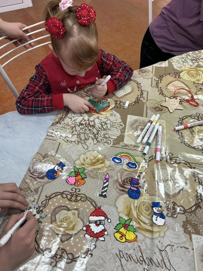 На мастер-классе по витражной живописи каждый смог стать волшебником: под чутким руководством наставников на прозрачных полотнах оживали заснеженные леса, мерцали новогодние гирлянды и расцветали зимние сказки.