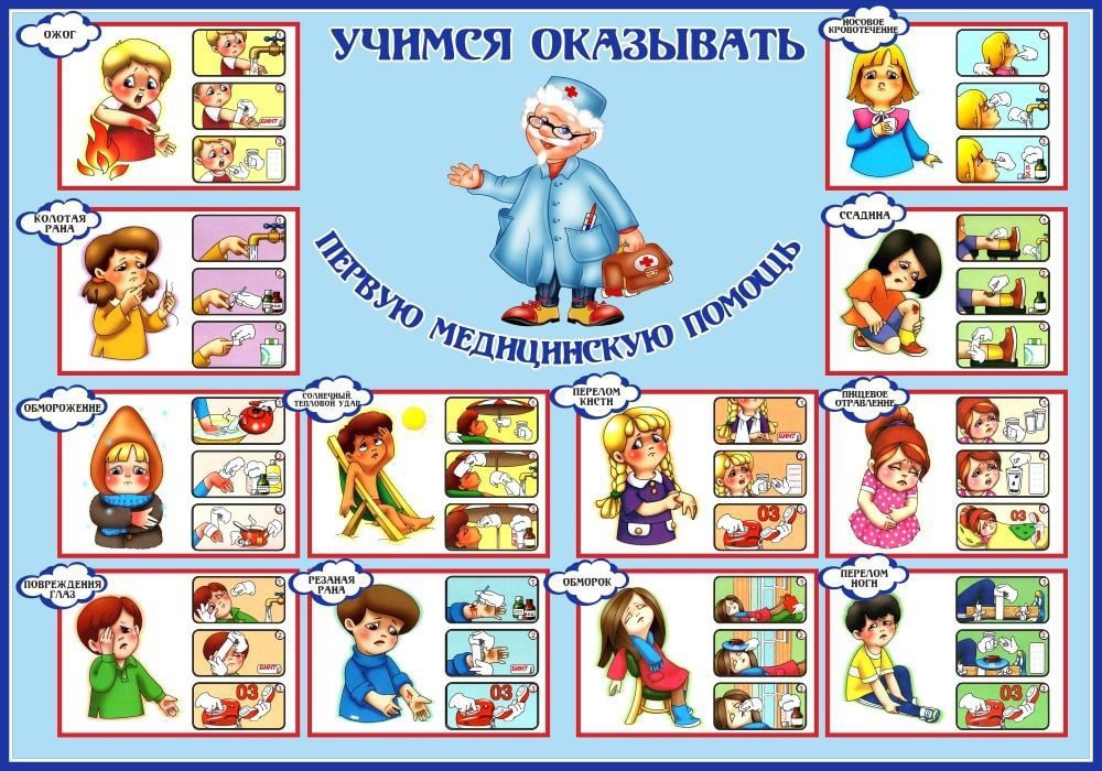Первая доврачебная помощь — это комплекс мероприятий, направленных на восстановление или сохранение пострадавшего до оказания медицинской помощи. Ее должен оказывать тот, кто находится рядом с пострадавшим, или сам пострадавший до прибытия медицинского работника. Детям с раннего возраста необходимо объяснять в доступной форме правила оказания первой помощи.